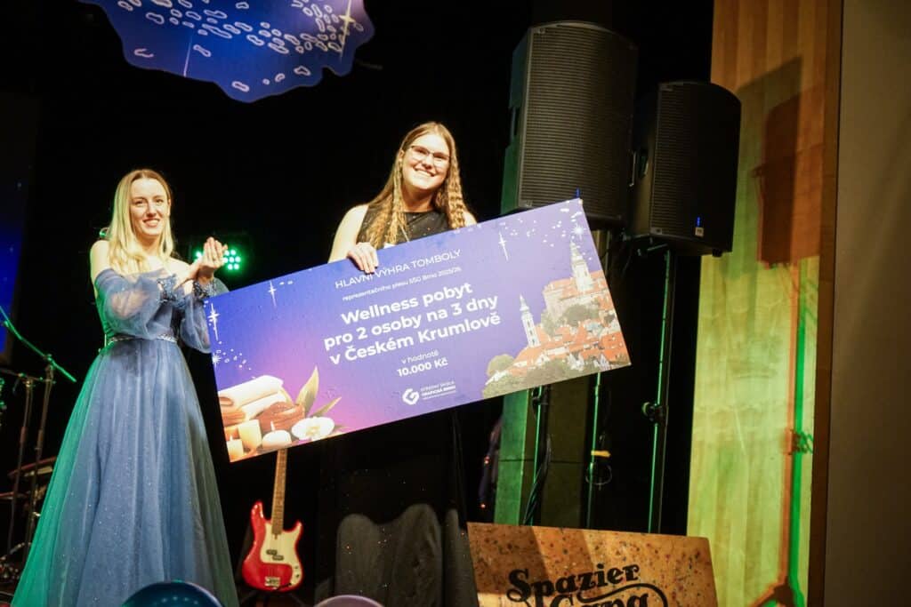 Součástí programu bylo tradiční slavnostní šerpování maturantů, které patří k nejvýznamnějším momentům celého večera. Nechyběla ani bohatá tombola, jejíž hlavní cenou byl wellness pobyt pro dvě osoby na tři dny v Českém Krumlově. Za dary do tomboly patří velké poděkování všem sponzorům, kteří tuto část programu podpořili.